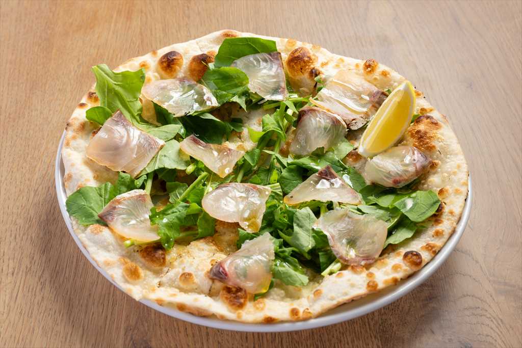 【수제 훈연 방어와 루콜라를 곁들인 로마식 피자(샐러드 스타일)】