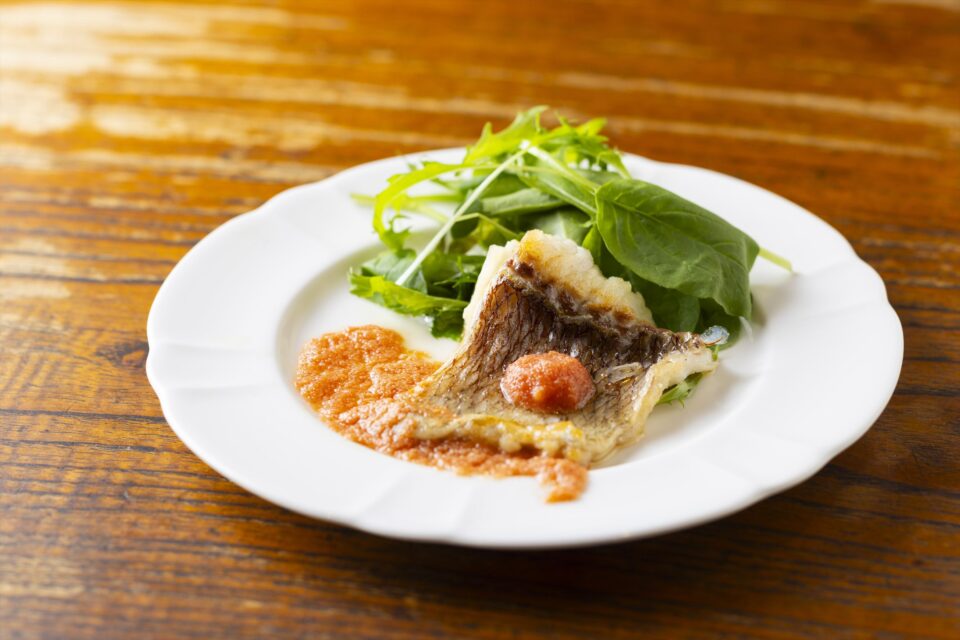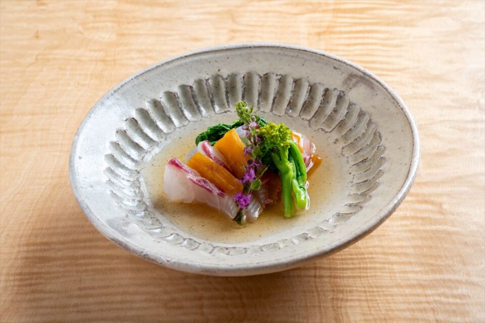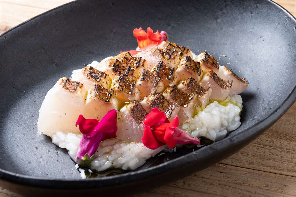 【후쿠오카현산 참돔 아부리, 후쿠오카산 유메쓰쿠시 쌀 앙과 야메차 오일】