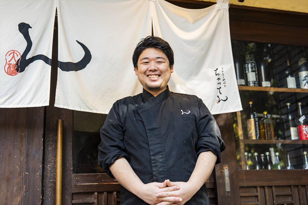 縁起がいいとされおせち料理に使われることも多い鰆。この刺身を土鍋の底に敷いた藁の上にのせ、まず表面を炙る。藁に点火して炎があがった後、蓋をして数分でできあがり。この時期は特にしっとりした食感で脂がのった身に燻香がプラスされた独特の味わいを、にんにくたまり醤油か塩と一緒に味わおう。「塩を合わせると燻香がより際立ちますね」と店長・岩本さん。岩本さんセレクトの日本酒や焼酎が料理の味わいをさらに高める。