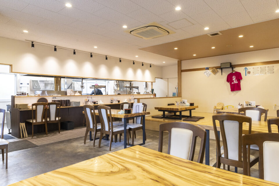2022年に開業した広々として清潔感がある明るい店内。『有明のりラーメン』の海苔は、すぐ近くにある『海苔屋のりまき』から仕入れている
