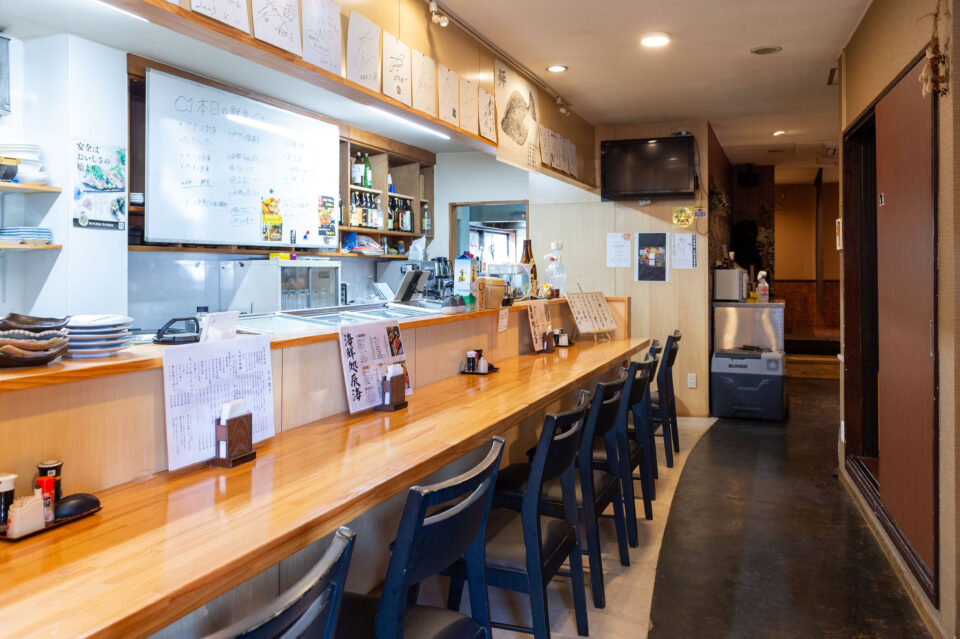 新鮮な魚介を使用した海鮮丼や定食がメインのお食事処。夜はバラエティに富んだ一品料理とともにお酒を楽しむこともできる