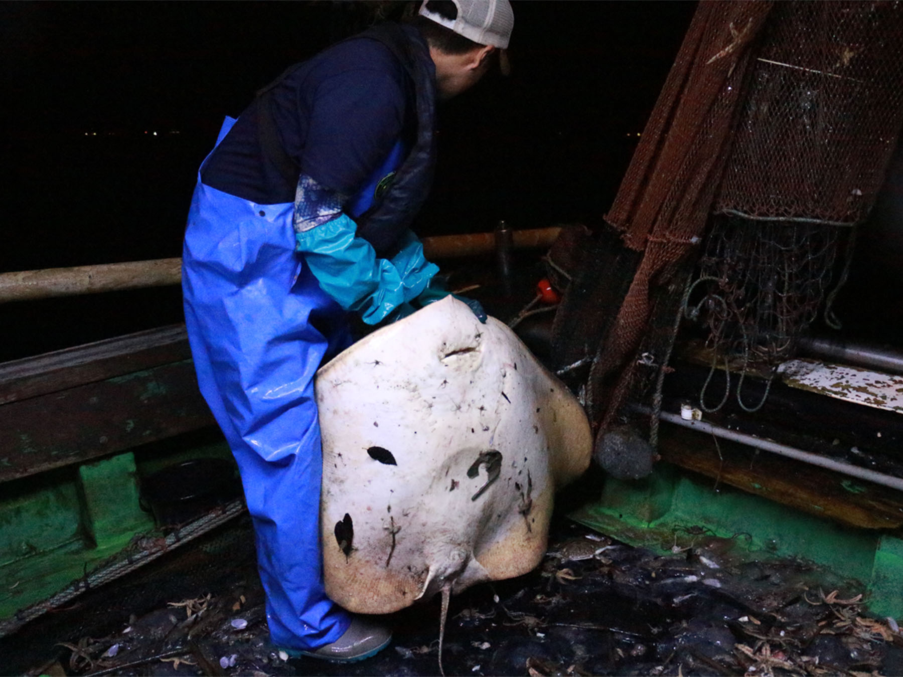 大きなエイが網に入るのは困りもの